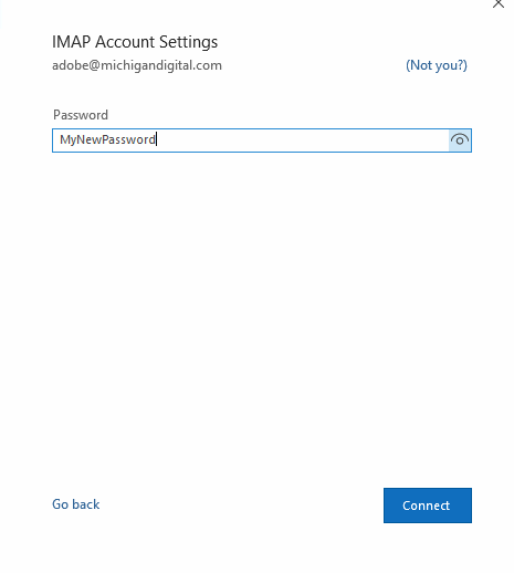 Here's a guide to set up your new email account in Outlook! This uses the email address adobe@michigandigital.com as an example. Please substitute your own address.